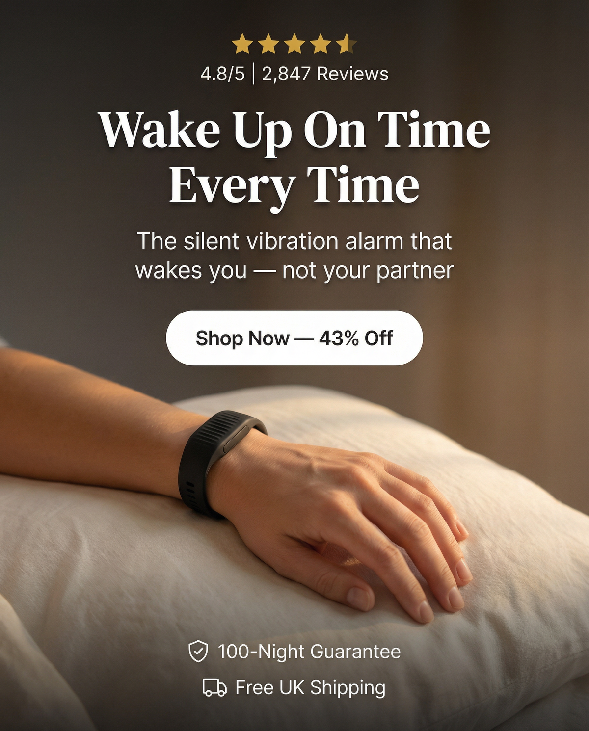 After years of sleeping through alarms, this vibration band actually works. My partner loves it too since there's no noise.